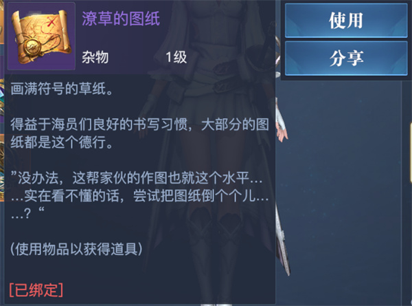 潦草的图纸使用后可以获得物品,打开后是一张初级战斗图纸。