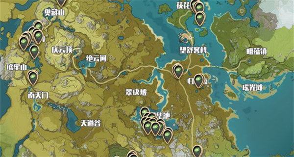 下图青色的标记都是莲蓬,璃月港到处都是莲蓬,把黑地图解锁了,去河边找。