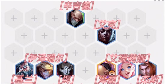 英雄组成:辛吉德、艾克、基兰、伊泽瑞尔、烬、泽丽、艾瑞莉娅、杰斯