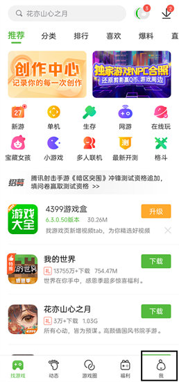 1、首先打开手机上的4399游戏盒软件,打开后点击游戏叫位置的【我的】选项;