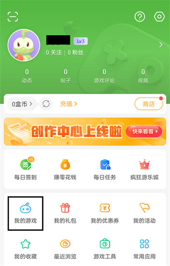 2、进入个人信息界面,在该界面可以查看许多的设置选项,找到里面【我的游戏】点击进入;