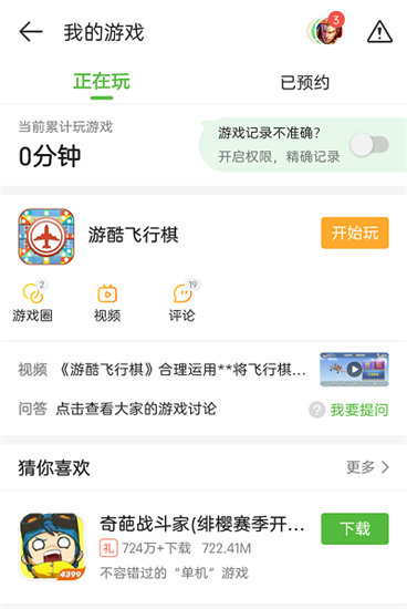 3、在我的游戏界面可以查看玩家玩过的所有游戏,并且在游戏后面还有对应的游戏时长,点击后面的开始玩选项就可以开启游戏体验。