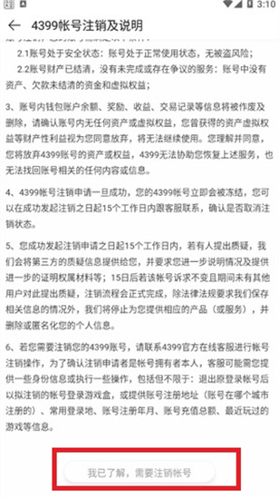5、这时候玩家们点击【我已了解,需要注销帐号】;