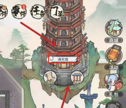 1.玩家需要自身修为突破到金丹初期才可进入通天塔。