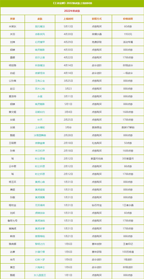 以上就是王者荣耀新皮肤时间表2022的攻略了,希望能帮助到大家!