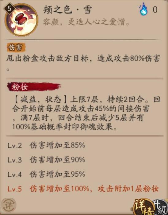Lv.5 伤害增加至100%,攻击附加1层粉妆