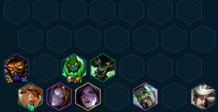 阵容不是很适合上九,有炼金、挑战相关转职可以上九开高炼金或是高挑战。后期需要针对阵容进行站位和吹风法衣针对,蛮王和对面C位站对角保证可以启动后第一个技能直接接近并秒杀后排。选秀找卡莎装备,后期卡莎作为副C补充伤害