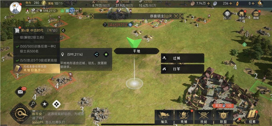 1、选好一处迁城地点(空地),长按空地可以看到【迁城】与【行军】按钮。