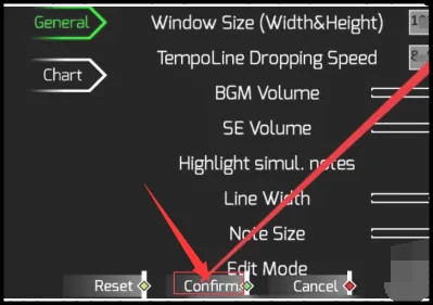 3、如图所示设置自制谱数值和背景音乐,然后点击【CONFIRM】试玩自制谱关卡。