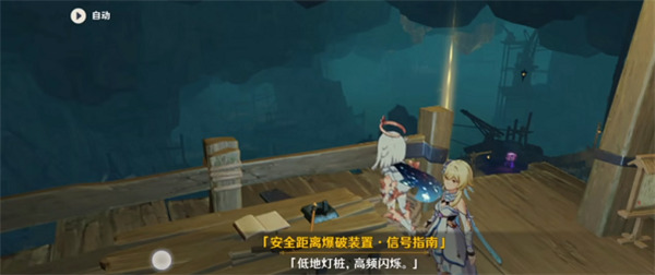 2、互动后会告诉我们解除保险机的技巧,分别是”低地灯柱高频闪烁,中位灯柱低频闪烁,高地灯柱低频闪烁“;