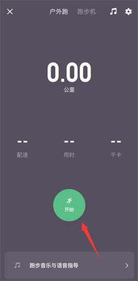 4在户外跑或跑步机中点击“开始”按钮即可记录跑步公里。