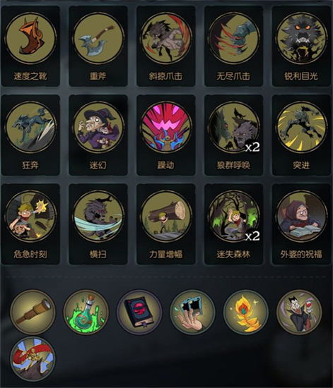 核心:狼群(重中之中),危急时刻,过牌,可选(伐木斧,重斧,鞋子,压抑本能,横扫,力量增幅,迷失森林,虚晃苦战配合基因改造祝福,争强好胜祝福),自行将可选与核心配合。