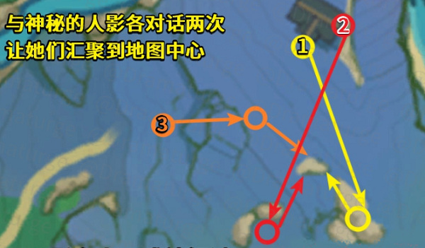 4.荒废神社在影向山,与三个式神各对话两次,让她们汇聚在狐狸雕像处。