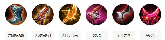 1、出装顺序:攻速鞋、无尽、电刀、饮血剑、破晓、影刃