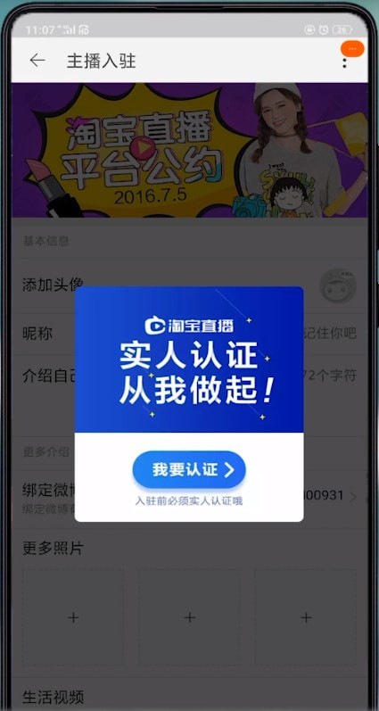 进入淘宝直播后点击右上方三点,然后选择【主播入驻】