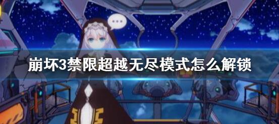 崩坏3是一款非常好玩并且超级优质的优秀手游,在这款崩坏3中玩家可以感受到非常优质的画质,这里有着不同属性的女武神等你解锁与收集,在这里有着更加优质的玩法,十分丰富的趣味体验。在这里有着全新的趣味玩法,能更好的自由切换女武神,有着每一个角色都有着更加独特的战斗模式,更加合理的帮助全新的玩法体验,这里有着更加直观的操作,以及独特的qte模式,有着更加精准的按键触发多种特殊的效果,这里有着多种女武神培养路线,能感受到专属你的女武神属性,下面我来告诉大家禁限超越无尽模式怎么解锁。