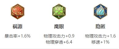 蓝色隐匿移速方便孙尚香更好的移动寻找输出位置,团战支援也比较迅速,物理攻击可以提伤害。绿色鹰眼,穿透护甲后孙尚香的攻击伤害会更高。前期在有祸源铭文的情况下,暴击更多,清野,清兵线的速度更快,发育更快。