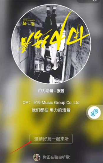 进入一起听之后,就会随机歌曲,然后点击里面的邀请好友一起听,等好友同意就好了。