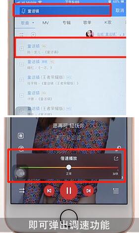 长按正下方【音乐播放】图标,即可弹出【调速】功能,根据自己的需求来调整播放速度吧。