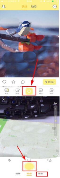 1、打开黄油相机,点击正中间的【黄色圆圈】进行拍照录影,接着点击【录影】,再长按【黄色圆圈】拍摄视频,拍好后松开圆圈就可以,如下图。