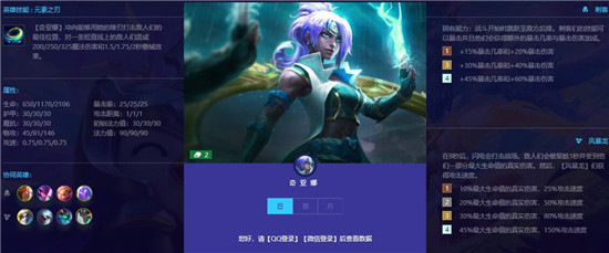 【奇亚娜】冲向能够用她的锋刃打击敌人们的最佳位置,对一条短直线上的敌人们造成200/250/325魔法伤害和1.5/1.75/2秒缴械效果。属性:生命:650/1170/2106暴击率:25/25/25