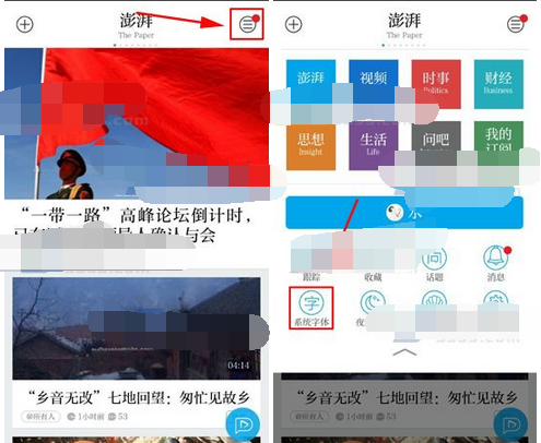 我们先打开澎湃新闻App接着再点击右上角的【图案】,接着再点击【系统字体】即可切换其他字体了。(如下图)