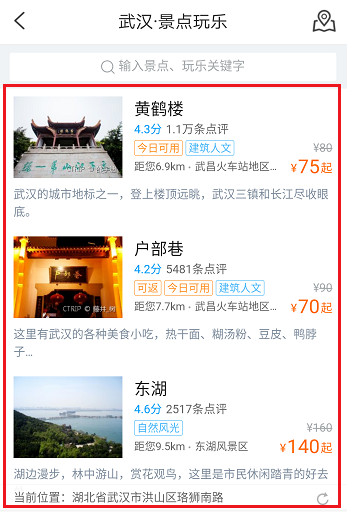 4.可以看到目的地的所有景点,可以直接搜索精确查找要购买门票的景点