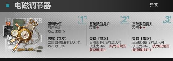 强,怎么说,太强了,直接在天赋上增加技力回复,可以和白面鸮的光环叠加,可以大幅度降低异客的真空期,加上这次保全派驻非常适合减速类的干员,可以升来打保全副本,目前保全高台优质输出位之一。