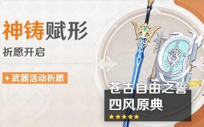 亲爱的旅行者,「神铸赋形」活动祈愿即将开启,「单手剑·苍古自由之誓」「法器·四风原典」概率UP!