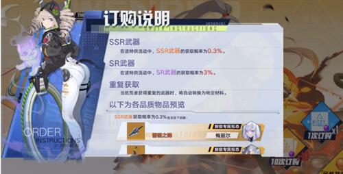 保底机制:最多进行【10次订购】必定可以通过保底获得SR或以上品质武器。