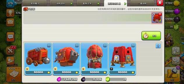 攻城战车是现阶段陆地兵种最喜欢的攻城器械,因为他的攻击偏好是城墙,可以很好地为陆地兵种开路,以实现进攻核心区域的目的,就像上一篇提到的天鹰火炮,就可以用攻城战车实施有针对性的打击,但是缺点也有很多,就是比较脆而且是在队伍的最前方,容易没有接近目标以前就被集火打掉,所以里面的配兵很主要,如果防御比较密集推荐,雷龙或者是武神。
