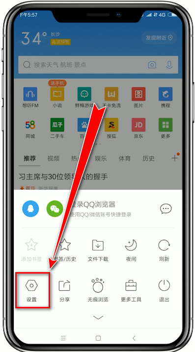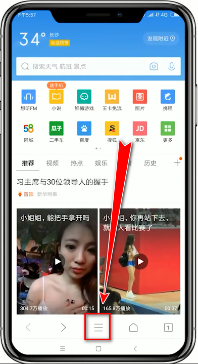 1、首先打开QQ浏览器app,点击界面下方的三条横线;