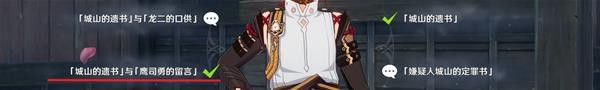 2、在鹿野院平藏邀约任务中,需要在【犯罪动机】中选择:《城山的遗书》和《鹰司勇的留言》这两本