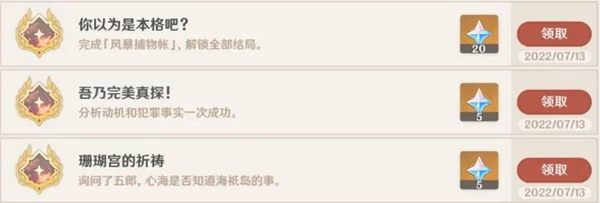 其中[吾乃完美真探]、[珊瑚宫的祈祷]为隐藏成就