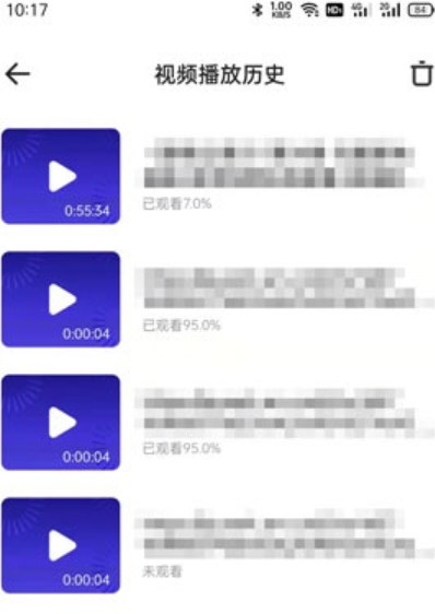 6、点击上方【视频播放历史】即可查看视频播放历史记录。