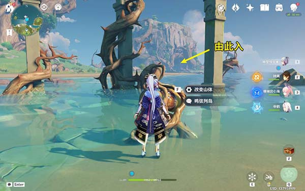 2、将破破岛的形态调整为矮山形态,从下图箭头处进入山洞。