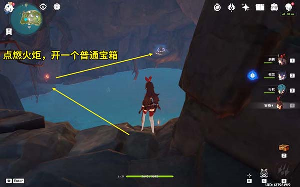 3、点亮4个火炬,再点亮火元素方碑后,水位下降。