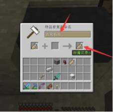 1.命名牌需要在铁砧上才能写上名字,所以先合成一个铁砧,需要4个铁锭 3个铁块,合成方法如上图。