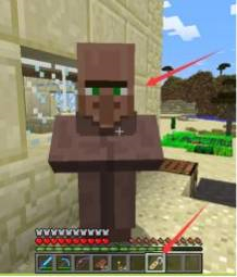 3.拿着我们命名好的命名牌,右键村民,可以发现,村民头上出现了“农民伯伯”的字样,这样这个村民就被命名了。