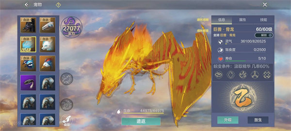 3、找到NPC巫铁铁消耗指定材料吞噬飞雪尾巴即可完成进化了。