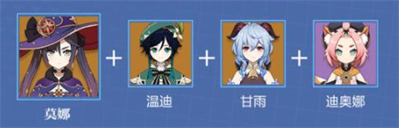打法操作:甘雨Q-温迪EQ-迪奥娜EE-莫娜Q-甘雨E蓄力A-莫娜E-甘雨蓄力A