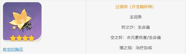 四、原神珊瑚宫心海圣遗物推荐;教官的胸花过渡用(开宝箱获得)。