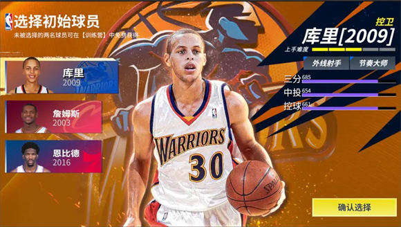 新秀库里以其精准的三分投篮和快速的突破能力著称,是外线的得分利器。