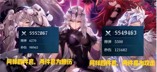 就比如妮蔻拉丝如果选六个全带粉碎套,则实际测试并且暴击不高的情况下,六粉碎搭配比4粉碎2攻击的组合仅仅就两件套效果不一样伤害就差了百分之17,而粉碎两件套效果是暴伤25%的加成,所以如果你的攻击不暴击那么暴伤加多少对伤害的提升都没有帮助,所以前期还是直接加攻击力来的实在,也因此暴伤和暴击是息息相关的。