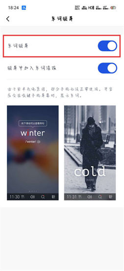 (注意,部分手机型号因为系统原因,开启单词锁屏后,锁屏界面无法显示单词锁屏)