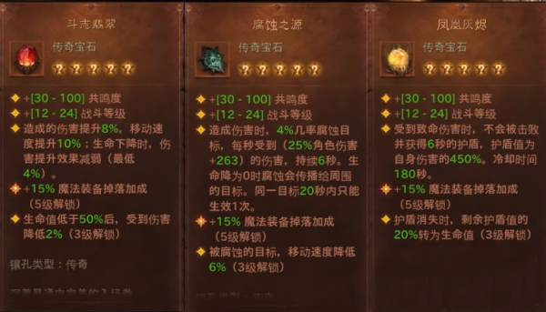 3、高氪度宝石推荐:斗志翡翠 腐蚀之源 凤凰灰烬 神之恩赐 泽文森的独居 狼嚎之语