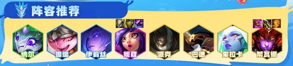 这套阵容妮蔻是单坦,需要承受大部分伤害,对坦度装备比较较高。石像鬼是最优的开局增加较高双抗,让其稳定释放出技能。第二件建议狂徒,狂徒极大增加生命值上限,保证稳定释放出第一波技能;第三件装备看情况选择坦度装备就好龙牙、反甲、救赎、冰心等。