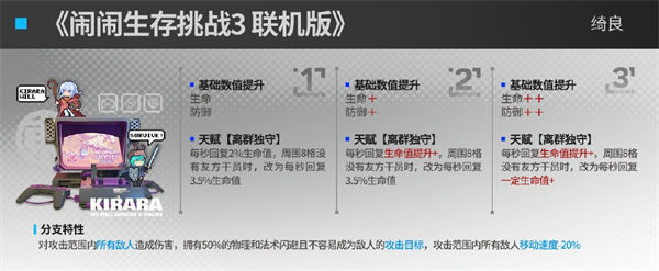 每秒回复生命值提升+,周围8格没有友方干员时,改为每秒回复3.5%生命值