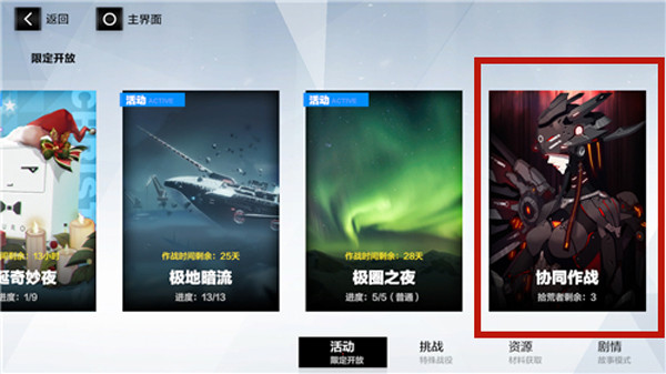 1、打开游戏的活动界面,然后在活动界面的最右边可以看到【协同作战】玩法。