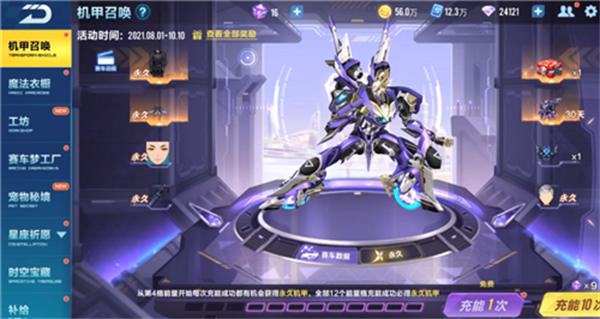 机甲车一般都是通过特殊的抽奖活动,叫做机甲召唤,通过充能12次满,才能够获得永久的t车,其价格就是在2000RMB最少。